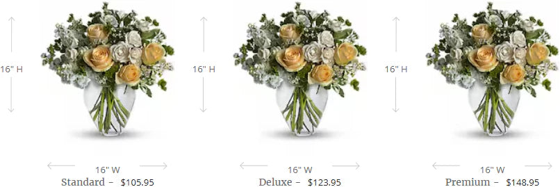 Peaceful and pure. This pretty arrangement of white and light colors will let anyone know they are in your thoughts.